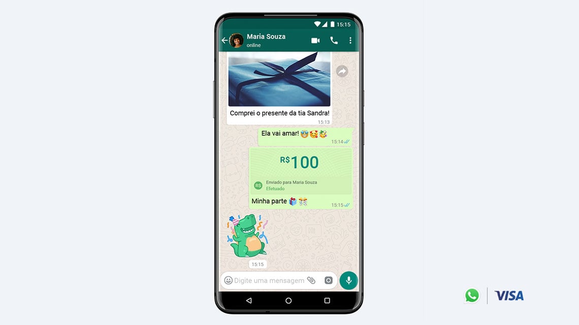 “Los usuarios de WhatsApp ahora pueden enviar dinero a amigos y familiares, y realizar pagos a comercios. Esto significa que los propietarios de pequeñas empresas pueden ahora aceptar pagos en la aplicación, junto con las funcionalidades de mensajería que ya utilizan”, dijo Fernando Teles, gerente general de Visa en Brasil. “Nos alegra ayudar a habilitar una mayor funcionalidad en WhatsApp a través de Visa Direct y la nueva tecnología de Tokens en la Nube, para ayudar a los consumidores a comprar y pagar de forma digital, a la vez que se ofrecen a los comercios mayores opciones de pago”.